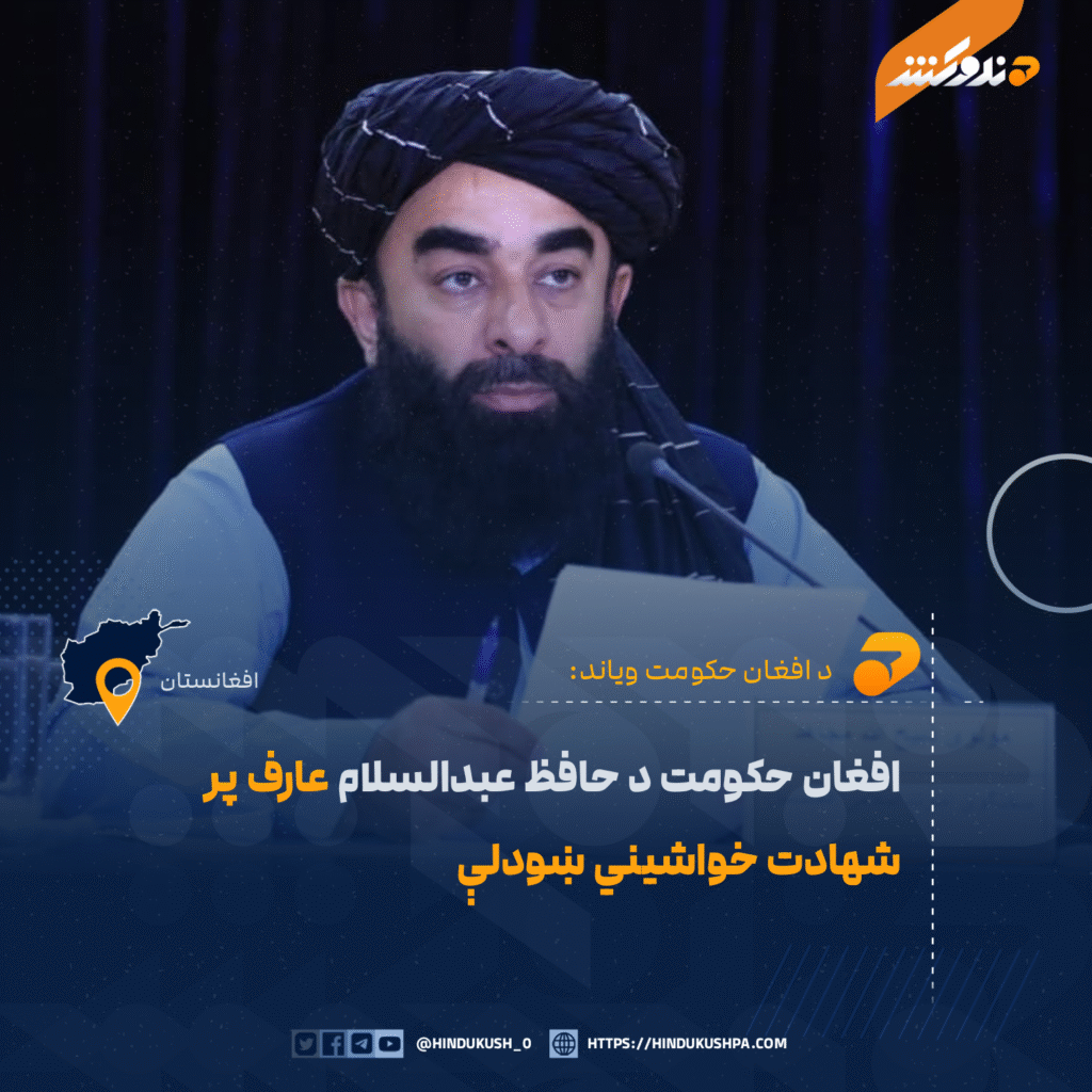 د افغان حکومت ویاند، مولوي ذبیح‌الله مجاهد د پاکستان د جمعیت علمای اسلام مخکښ غړي حافظ عبدالسلام عارف د بې رحمانه شهادت له امله خواشیني ښودلې ده.