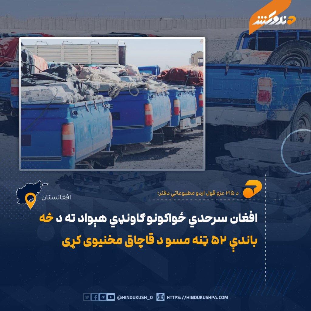 ‏د ۲۱۵ عزم قول اردو مطبوعاتي دفتر ویلي، چي تردې وړاندې هم د ياد کنډک ځواکونو په سرحدي سيمو کي د مختلفو موادو د قاچاق مخه نيولې ده.