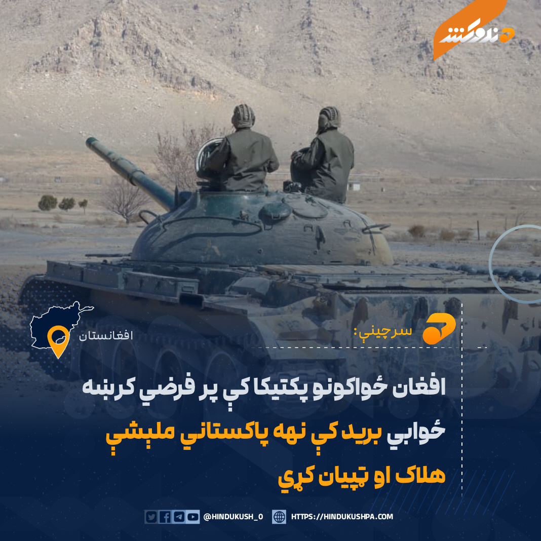 افغان ځواکونو نن پنجشنبه د پکتیکا تروې ولسوالۍ بخشي کلي کې پر فرضي کرښه د پاکستاني ملېشو پر یوې قرارګاه د هاوان مرمۍ توغولي.