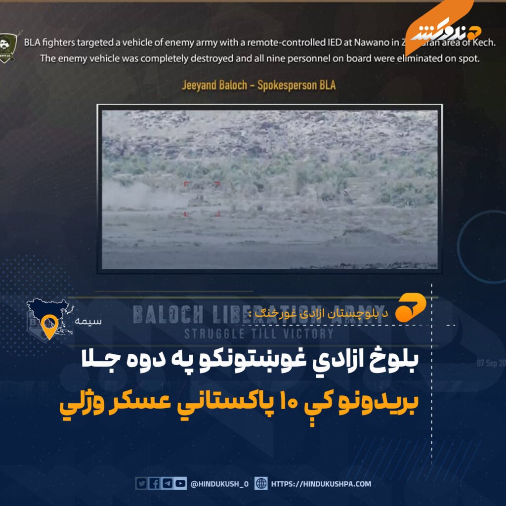 د بلوچستان ازادۍ غورځنګ (BLA) په یوه خبرپاڼه کې ویلي، چې جنګیالیو یې د بلوچستان ایالت زامران او قلات ولسواليو کې په دوو جلا بریدونو کې ۱۰ پاکستاني عسکر وژلي.