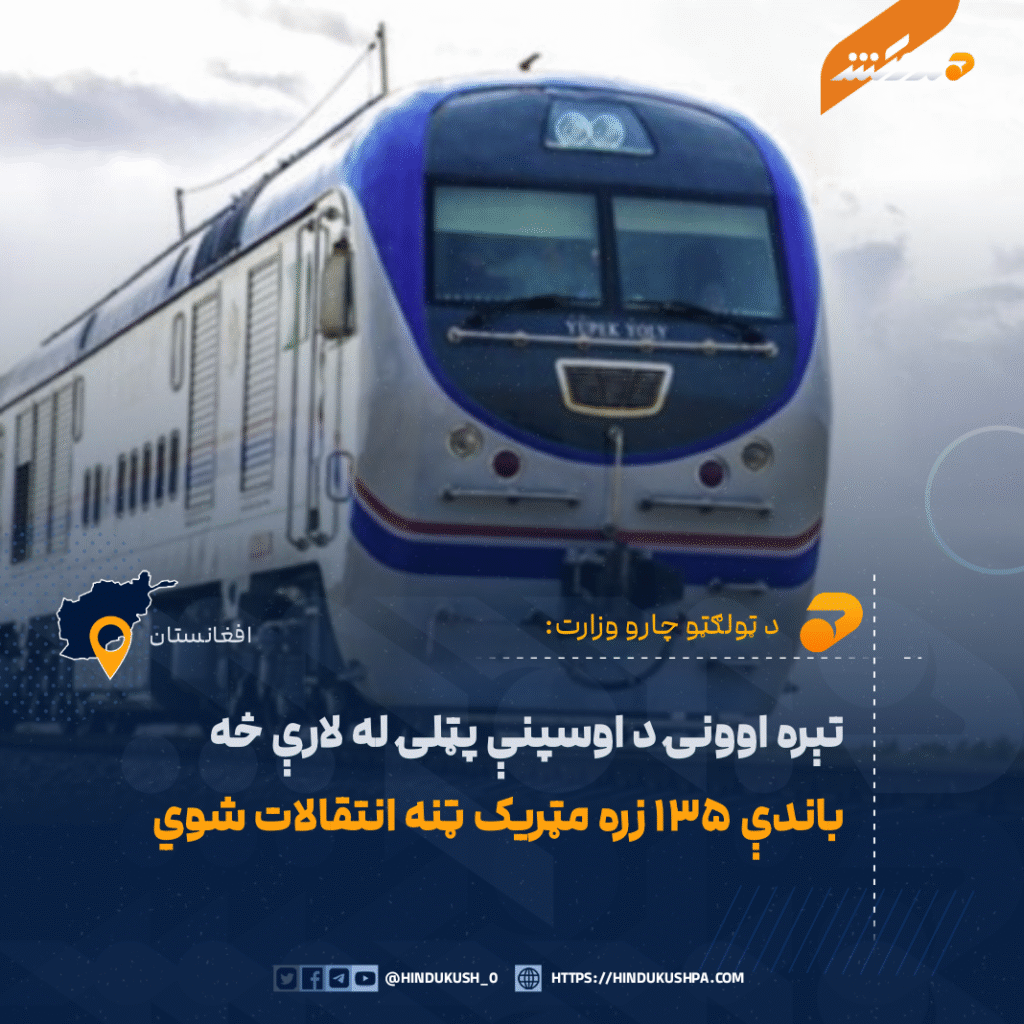 د ټولګټو چارو وزارت ویاند، محمد اشرف حقشناس وایي، چې په تېره یوه اوونۍ کې (د لړم میاشتې له ۱۶مې تر ۲۲مې نېټې پورې) د دغه وزارت د اوسپنې پټلۍ له لارې ۱۳۵ زره او ۴۹۴ مټریک ټنه انتقالات شوي دي.