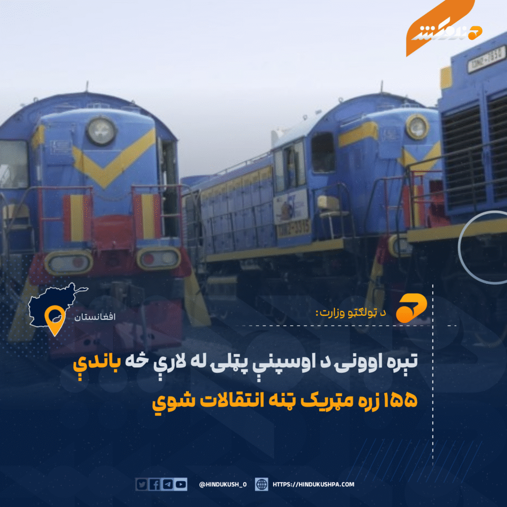 د ټولګټو وزارت وايي، تېره اوونۍ د یاد وزارت د اوسپنې پټلیو له لارې ۱۵۵ زره او ۳۴۵ مټریک ټنه انتقالات شوي دي.