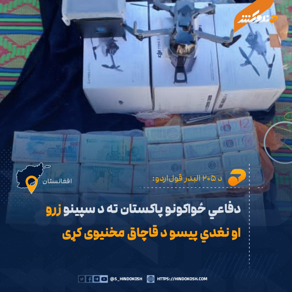 ‏د ۲۰۵ البدر قول‌اردو ویاند، نذیر شکېب هندوکش‌غږ ته ویلي، چې افغان ځواکونو تېره شپه پر ډیورنډ فرضي کرښه د ګزمې پر مهال درې ډرون کامرې، ۲۰۰۰ میلیونه ایراني تومن او ۱۶۹ کیلو ګرامه سپین‌زر نیولي دي.
