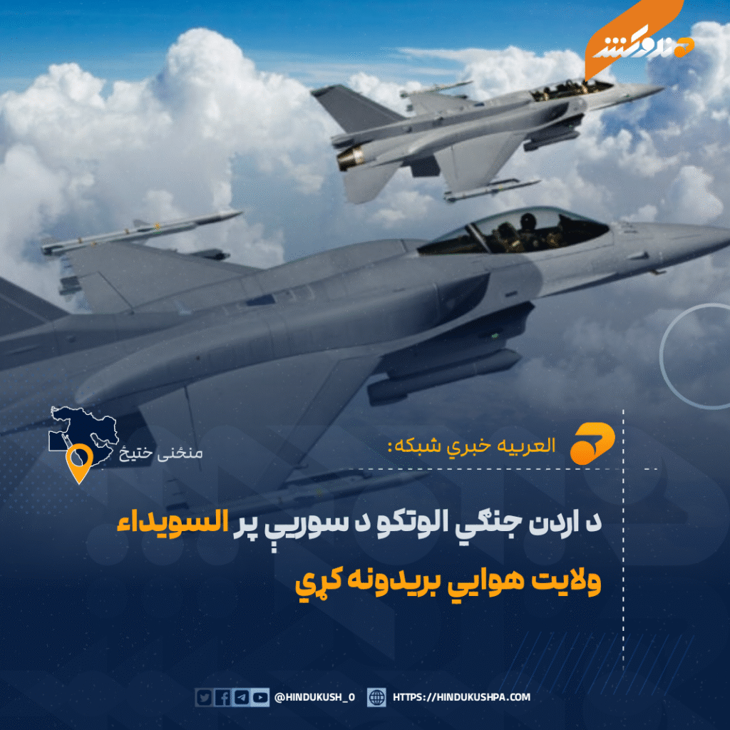 شېر کړئ Facebook Twitter بریښنالیک Telegram WhatsApp العربیه خبري شبکې راپور ورکړی، چې د اردن هوایي ځواک د سوریې السویداء ولایت پر «شعاب» کلیوالي سیمې هوایي بریدونه کړي.په راپور کې د اردني رسنیو له قوله راغلي چې دې بریدونو کې د نشهیي توکو کارخانې په نښه شوي دي. اردني چارواکو ادعا کړې، چې دغو بریدونو کې د نشهیي موادو یو شمېر قاچاقکوونکي هم وژل شوي دي.ویل شوي، د السویداء شعاب کلی دمګړۍ د غیر مسئوله وسلهوالو تر کنټرول لاندې دی.د سوریې حکومت تر دې مهاله په دې اړه څه نهدي ویلي.