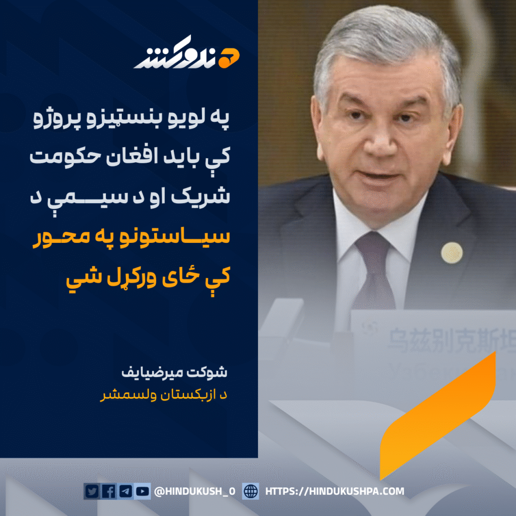 د ازبکستان ولسمشر، شوکت میرضیایف ویلي، چې په لویو بنسټیزو پروژو کې باید افغان حکومت شریک او د سیمې د سیاستونو په محور کې ځای ورکړل شي.