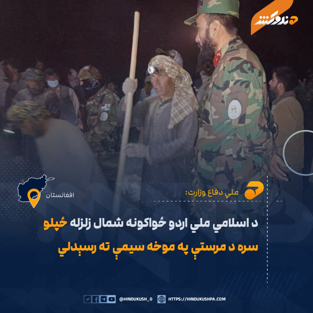 ملي دفاع وزارت وايي، د اسلامي ملي اردو ځواکونه د هېواد شمال په تېره بيا بلخ او سمنګان ولايتونو کې د تېرې شپې زلزله ځپلو سره د مرستې لپاره سيمې ته رسېدلي دي.