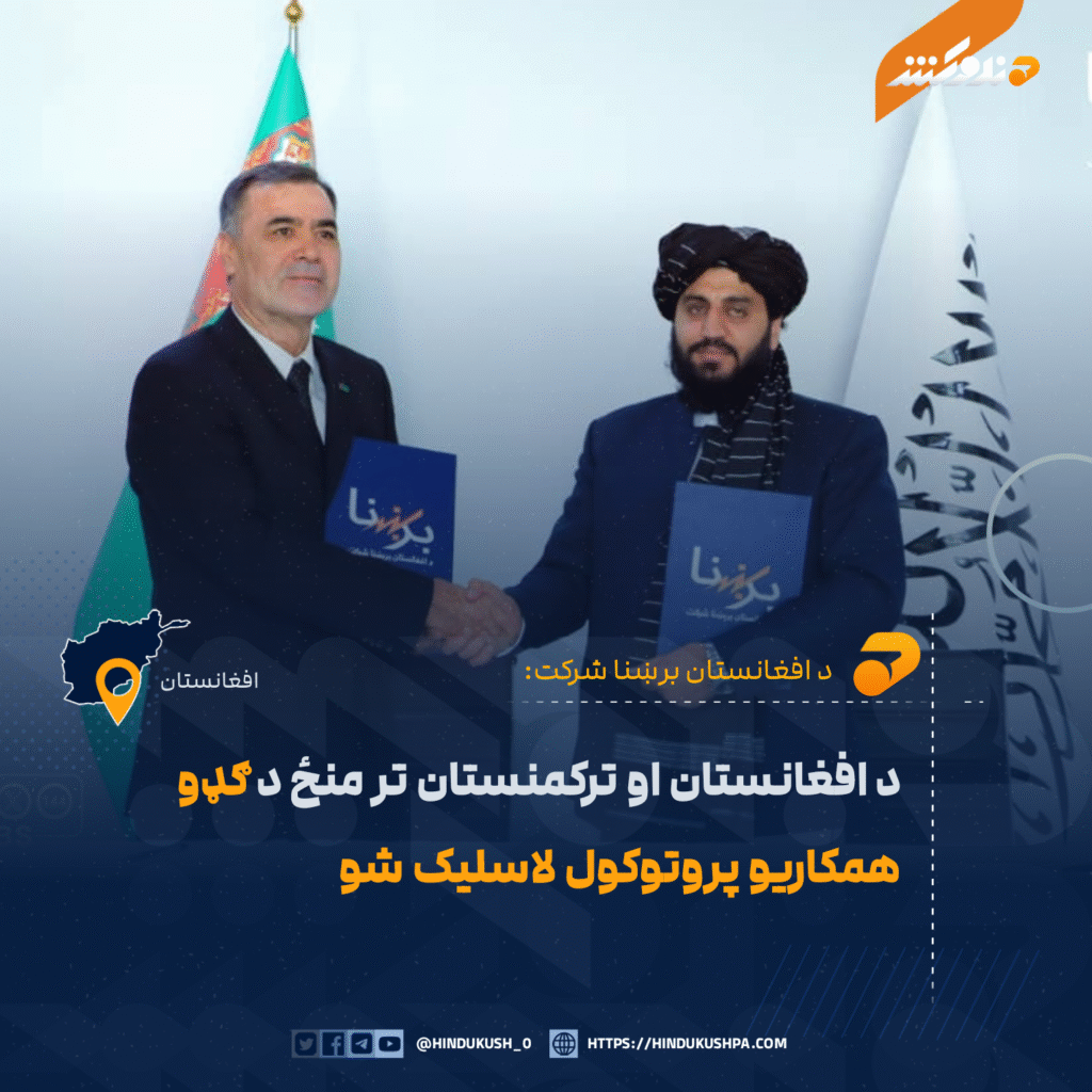‏د افغانستان برښنا شرکت عمومي اجرایوي رئیس ډاکټر عبدالباري عمر او د ترکمنستان هېواد د انرژۍ وزارت د نړیوالو پروژو عمومي رییس مراد ارتیکوف ترمنځ د ګډو همکاریو او پروژو چارو چټکتیا هوکړې پروتوکول لاسلیک شو.