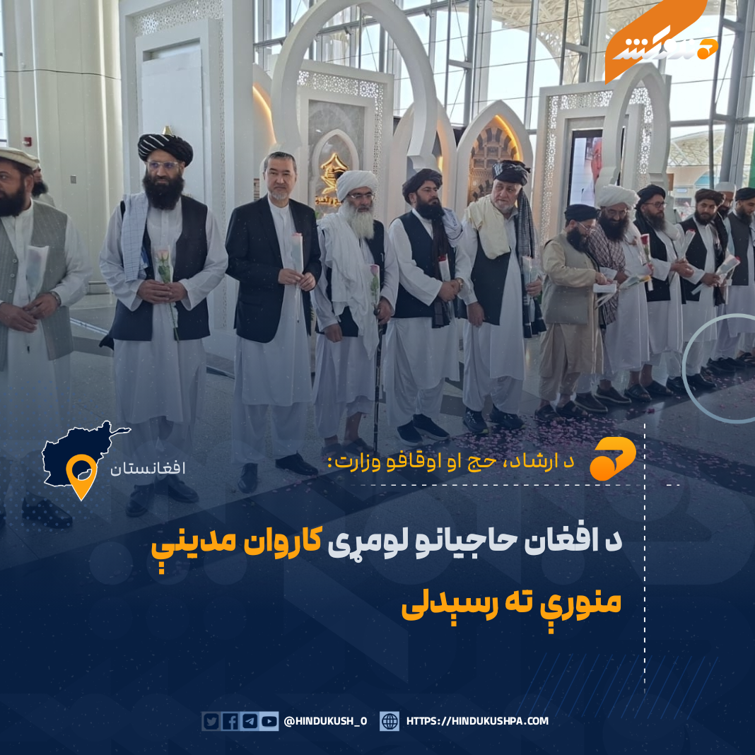 د ارشاد، حج او اوقافو وزارت وايي، چې د افغان حاجیانو لومړنی کاروان چې تېره شپه یې حرکت کړی و، د سعودي عربستان مدينې منورې ښار ته رسېدلی.