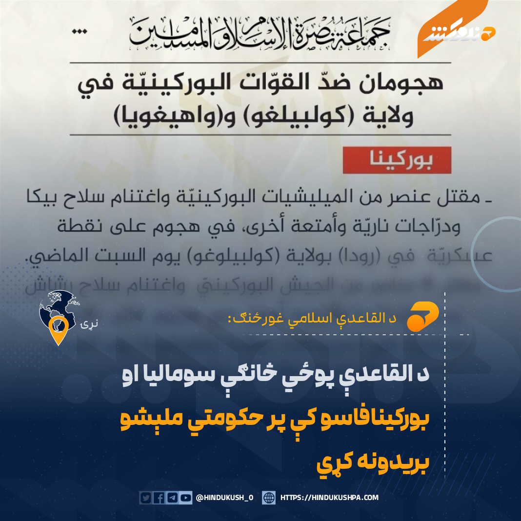 د القاعدې اسلامي غورځنګ پوځي څانګې «جماعة نصرة الاسلام والمسلمین» بورکینیافاسو او سومالیا کې پر پوځ او حکومتي ملېشو اووه بریدونه ترسره کړي.