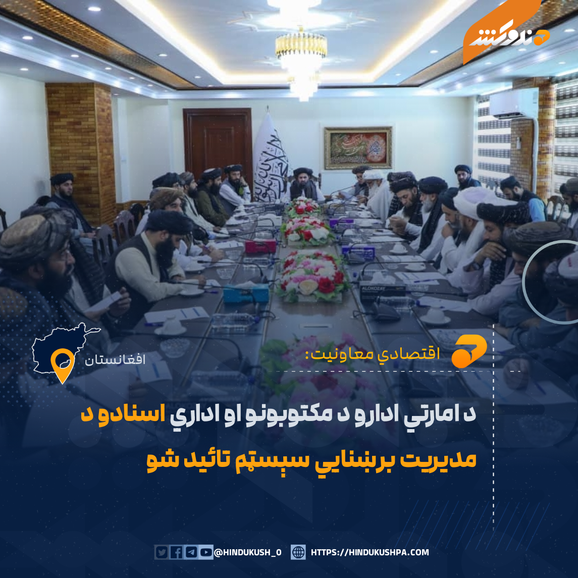 د ریاستالوزراء اقتصادي مرستیال، ملا عبدالغني برادر په مشرۍ د اقتصادي کمېسیون نوبتي غونډه کې د امارتي ادارو د مکتوبونو او اداري اسنادو د مدیریت برښنايي سېسټم تائید او د مخابراتو او معلوماتي ټېکنالوجۍ وزارت ته یې په تدریجي ډول د تطبیق لارښوونه وشوه.