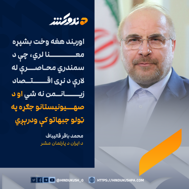 د ايران د پارلمان مشر محمد باقر قالیباف: اوربند هغه وخت بشپړه معنا لري، چې د سمندري محاصرې له لارې د نړۍ اقتصاد زیانمن نه شي او د صهیونیستانو جګړه په ټولو جبهاتو کې ودرېږي