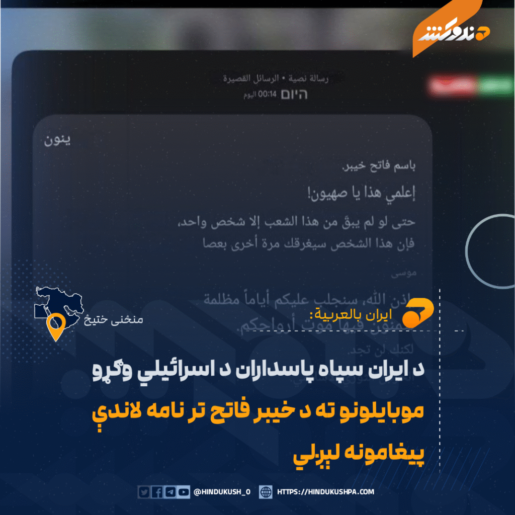 د ايران سپاه پاسداران د اسرائیلي وګړو موبایلونو ته د خيبر فاتح تر نامه لاندې پيغامونه لېږلي