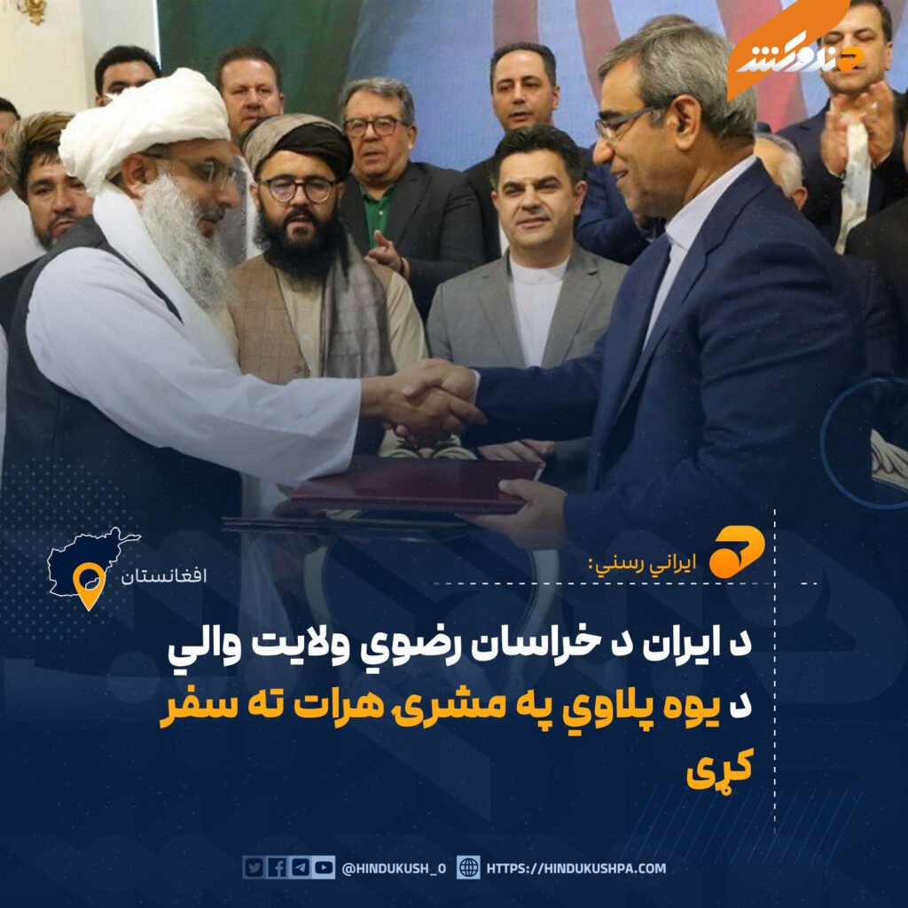 شېر کړئ Facebook Twitter بریښنالیک Telegram WhatsApp د ایراني رسنیو د راپورونو له مخې، د دغه هېواد د خراسان رضوي ولایت والي د یوه پلاوي په مشرۍ د افغانستان هرات ولایت ته سفر کړی.ویل شوي، په دغه پلاوي کې د ایران د بېلابېلو ادارو ۵۶ استازي شامل دي.د دغه سفر موخه د افغانستان او ایران ترمنځ د سوداګریزو اړیکو پراختیا او د دواړو هېوادونو ترمنځ د مخکینیو هوکړو اروزنه ښودل شوې.ټاکل شوې یاد پلاوی په دې سفر کې له افغان سوداګرو سره په یوه ګډ اقتصادي کنفرانس کې ګډون او د هرات له والي سره وګوري.