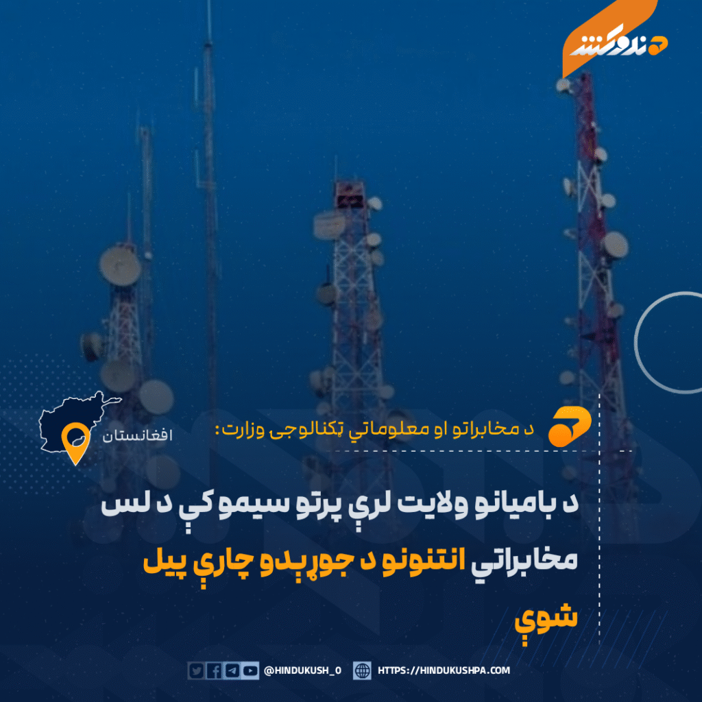 د مخابراتو او معلوماتي ټکنالوجۍ وزارت ویاند عنایت الله الکوزي ویلي، چې د مخابراتي خدمتونو د تنظیم ادارې د پلان له مخې د بامیانو ولایت لرې پرتو سیمو کې د لس مخابراتي انتنونو د جوړېدو چارې پیل شوې.