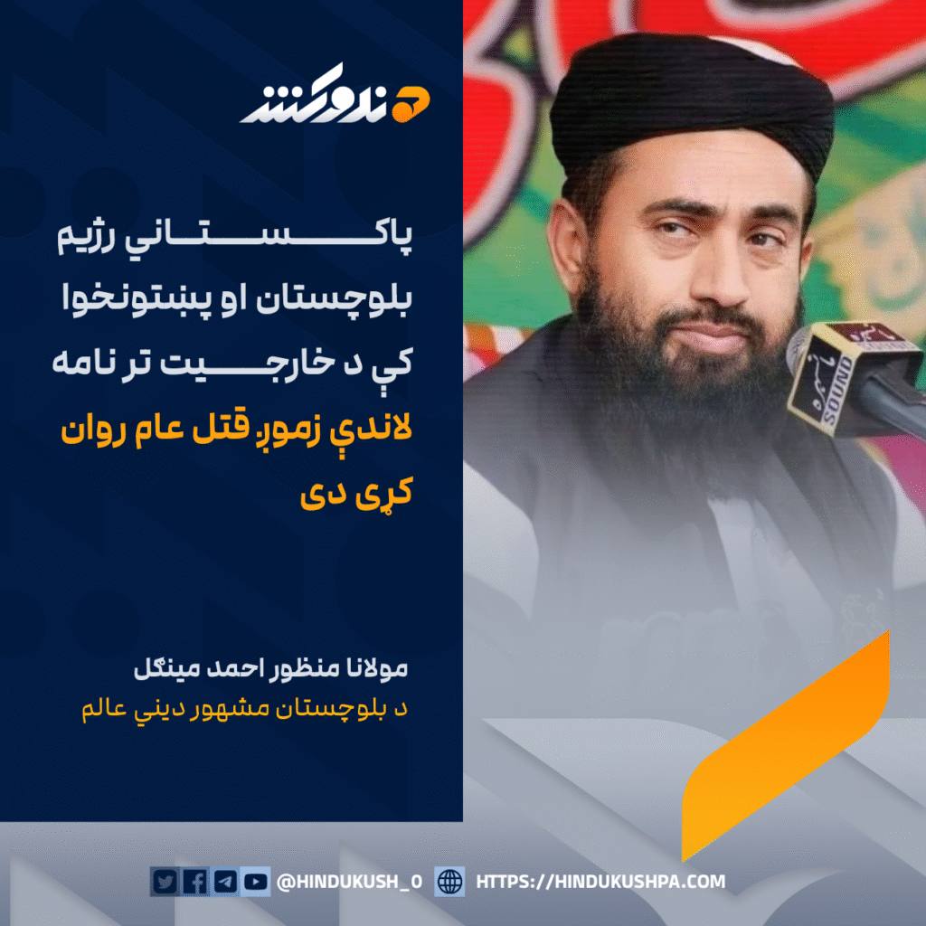 د بلوچستان مشهور ديني عالم مولانا منظور احمد مينګل د پاکستان د اتحاد العلماء غونډې ته په خبرو کې ويلي، چې پاکستاني رژيم پښتونخوا او بلوچستان کې د خارجيت تر نامه لاندې د خلکو قتل عام روان کړی دی.