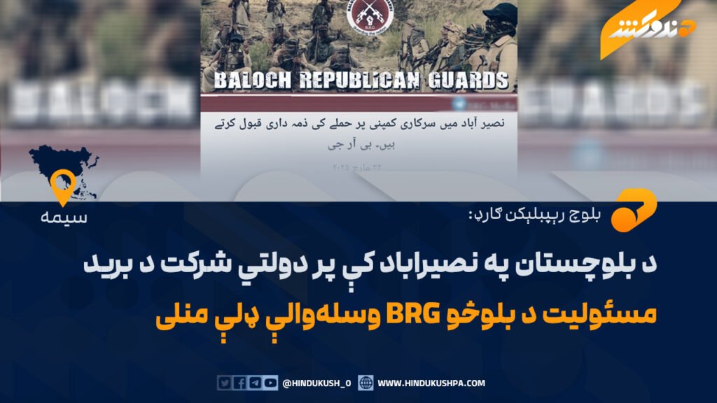 د بلوچ رېپبلېکن ګارډ «BRG» په نوم وسله‌والې ډلې د یوې خبرپاڼې په خپرولو سره د بلوچستان ایالت په نصیراباد ولسوالۍ کې د پاکستان پر دولتي شرکت د شوي برید مسؤلیت پر غاړه اخستی او ویلي یې دي چې د یاد شرکت ټول ماشینونه یې سوځولي دي.