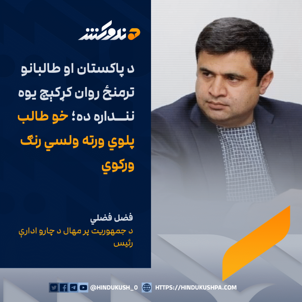 د جمهوريت پر مهال د چارو ادارې رئيس فضل فضلي: د پاکستان او طالبانو ترمنځ روان کړکېچ يوه ننداره ده؛ خو طالب پلوي ورته ولسي رنګ ورکوي