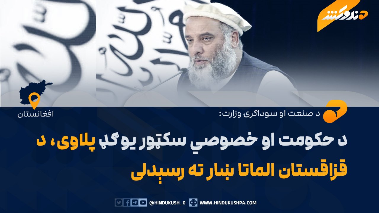د افغانستان اسلامي امارت د صنعت او سوداګرۍ وزارت سرپرست وزیر ښاغلي نورالدین عزیزي په مشرۍ د حکومت او خصوصي سکټور یو ګډ پلاوی، د قزاقستان الماتا ښار ته رسېدلی، چې د افغانستان د تولیداتو او محصولاتو نندارتون پرانېزي.