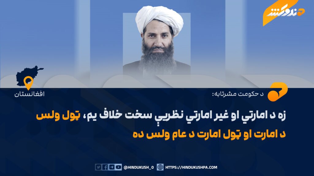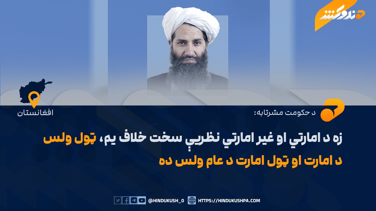 نوموړي همدا راز عام ولس ته په خطاب کې زياته کړې ده چې: «تاسو نه ياست جلا، تاسو د حکومت خلک ياست، تاسو د امارت خلک ياست، د دې نظريې زه سخت خلاف يم چې امارتي او غير امارتي، زه وايم ټول امارتي دي، موږ او تاسو سره يو، يو؛ زه ستاسو جهاد ته درناوی لرم».