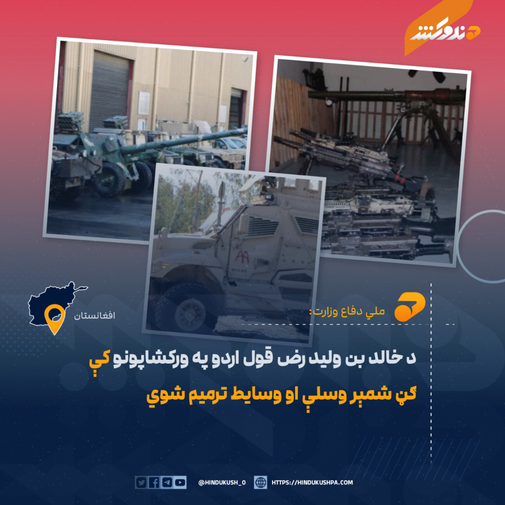 ملي دفاع وزارت وایي، د ۲۰۱ خالد بن ولید رض قول اردو ورکشاپونو کې ۱۳۴۷ عرادې پوځي وسایط او ۱۶۱میله وسلې ترمیم شوي.