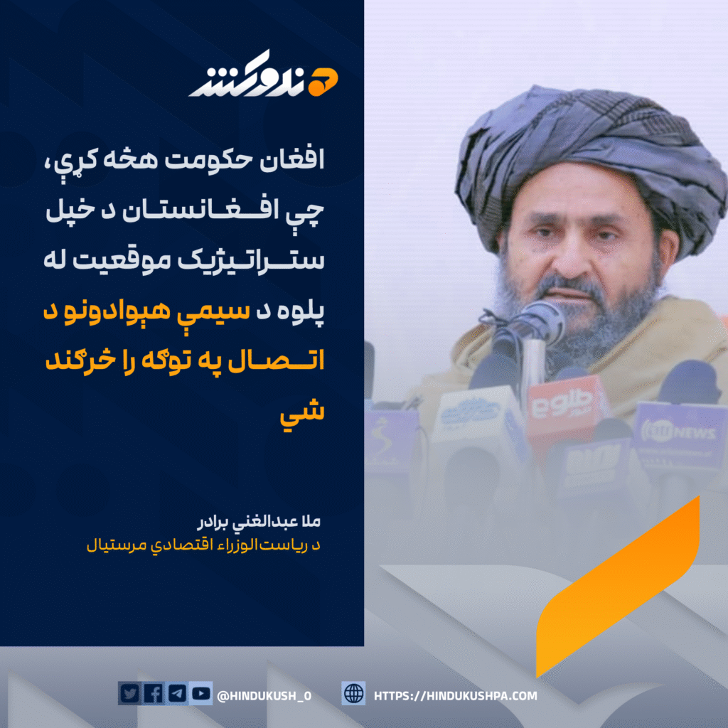 د ریاست‌الوزراء اقتصادي مرستیال، ملا عبدالغني برادر: افغان حکومت هڅه کړې، چې افغانستان د خپل ستراتيژيک موقعیت له پلوه د سيمې هېوادونو د اتصال په توګه را څرګند شي