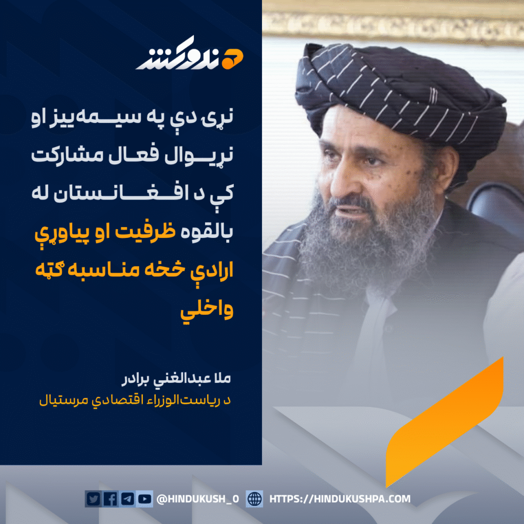 د ریاستالوزراء اقتصادي مرستیال، ملا عبدالغني برادر پر هېوادونو غږ کړی چې په سیمهییز او نړیوال فعال مشارکت کې د ا.ا له بالقوه ظرفیت او پياوړې ارادې څخه مناسبه ګټه واخلي.