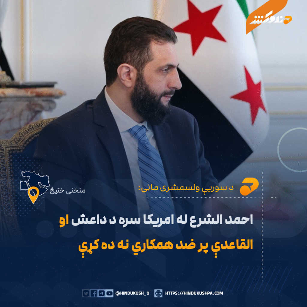د سوریې ولسمشرۍ ماڼۍ هغه راپورونه رد کړي، چې ګواکې د دغه هېواد ولسمشر احمد الشرع له ۲۰۱۶م کال راهیسې له امریکا سره د داعش او القاعدې پر ضد همکاري کړې ده.