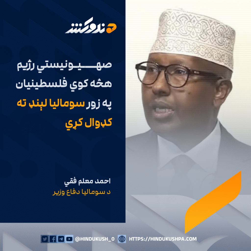 د سومالیا دفاع وزیر احمد معلم فقي ویلي، چې صهیونیستي رژیم هڅه کوي فلسطینیان په زور سومالیا لېنډ ته کډوال کړي.