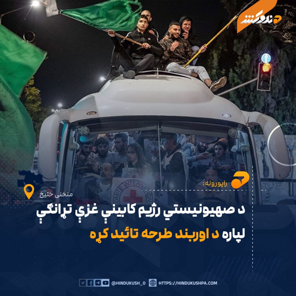 د صهیونیستي ر‌ژیم د لومړي وزیر دفتر اعلان کړی، چې د دغه رژیم د کابینې په غونډه کې د غزې تړانګې لپاره د اوربند هوکړه تائید شوې ده.