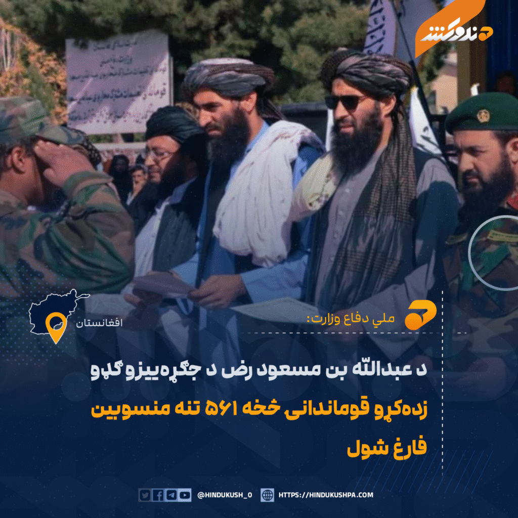 ملي دفاع وزارت وایي، د دغه وزارت د مرکزي قطعاتو او سیمهییزو قول اردوګانو ۵۶۱ تنه منسوبین د عبدالله بن مسعود (رض) د جګړهییزو ګډو زدهکړو قوماندانۍ له دولسمې دورې څخه فارغ شول.