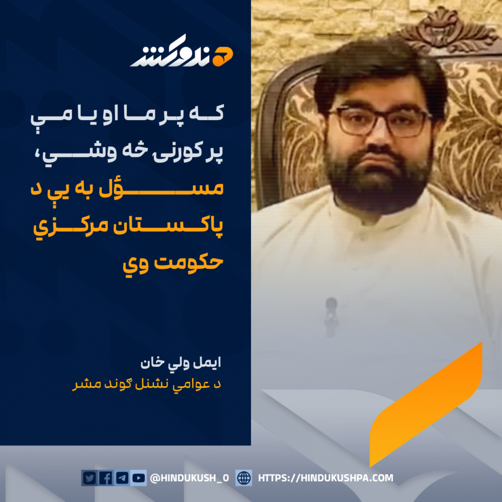 د عوامي نېشنل ګوند مشر ایمل ولي خان ویلي، چې که پر ده او یا یې پر کورنۍ څه وشي؛ نو مسئول به یې د پاکستان مرکزي حکومت وي.