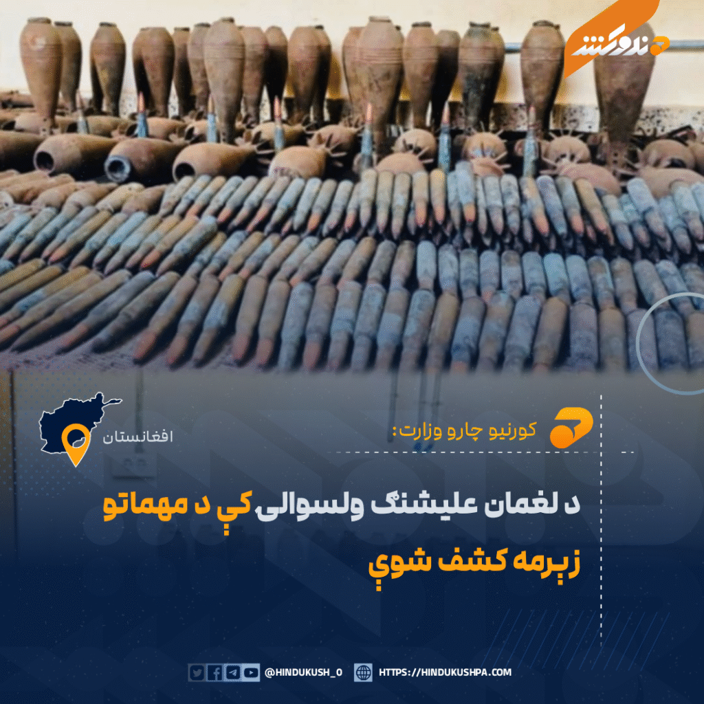 کورنیو چارو وزارت وایي، د لغمان علیشنګ ولسوالۍ پولیسو د دغې ولسوالۍ په سایګل دره کې، د درنو او سپکو مهماتو زېرمه کشف کړې ده.