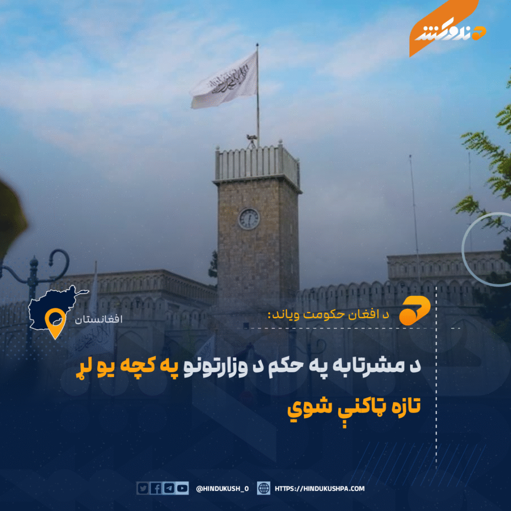د افغان حکومت وياند مولوي ذبيح الله مجاهد وايي، چې د مشرتابه په حکم په يو شمېر وزارتونو کې د وزيرانو او معينانو په کچه تازه ټاکنې شوې دي.