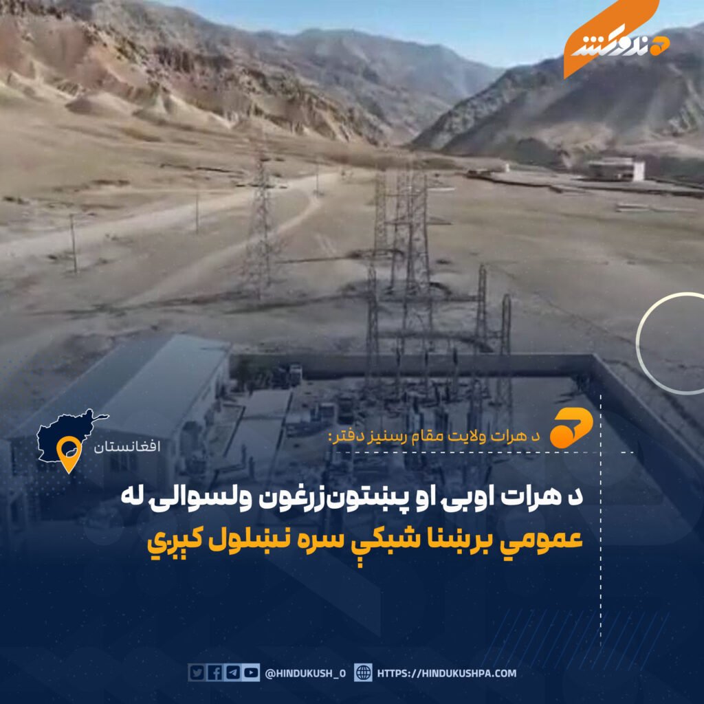 د هرات ولایت مقام رسنیز دفتر وایي، ډېر ژر به د دغه ولایت اوبۍ او پښتونزرغون ولسوالۍ د هرات برښنا له عمومي شبکې سره ونښلول شي.