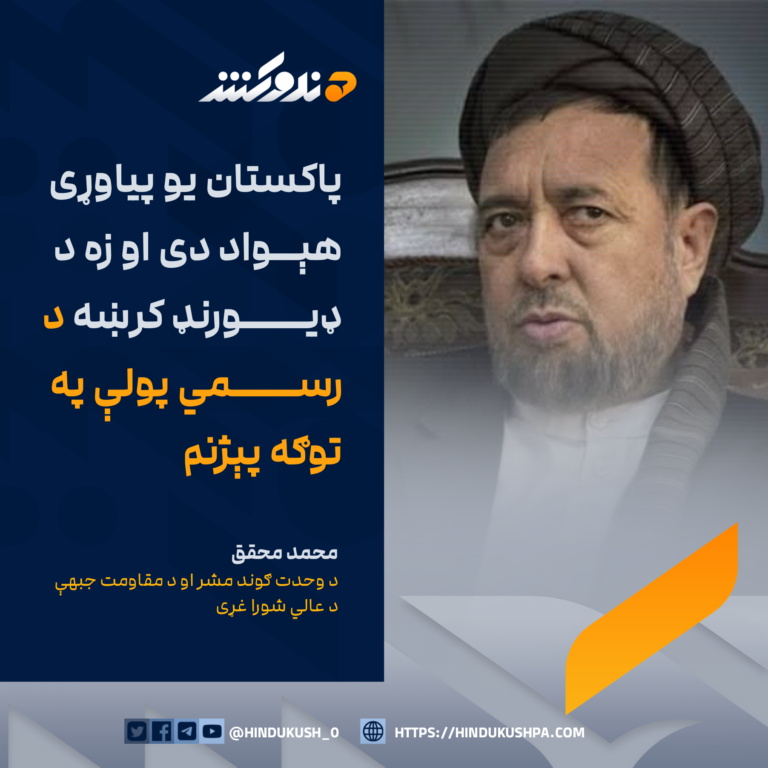 د وحدت ګوند مشر او د مقاومت عالي شورا غړی، محمد محقق وايي چې پاکستان یو پیاوړی هیواد دی او هغه کسان چې له دې هیواد سره سرحدي اختلافات لري، باید د خپل ځواک کچه په پام کې ونیسي.