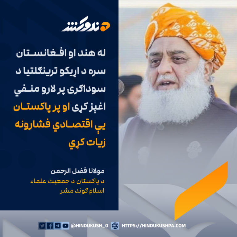 د پاکستان د جمعیت علماء اسلام ګوند مشر مولانا فضل الرحمن: له هند او افغانستان سره د اړیکو ترينګلتيا د سوداګرۍ پر لارو منفي اغېز کړی او پر پاکستان یې اقتصادي فشارونه زيات کړي