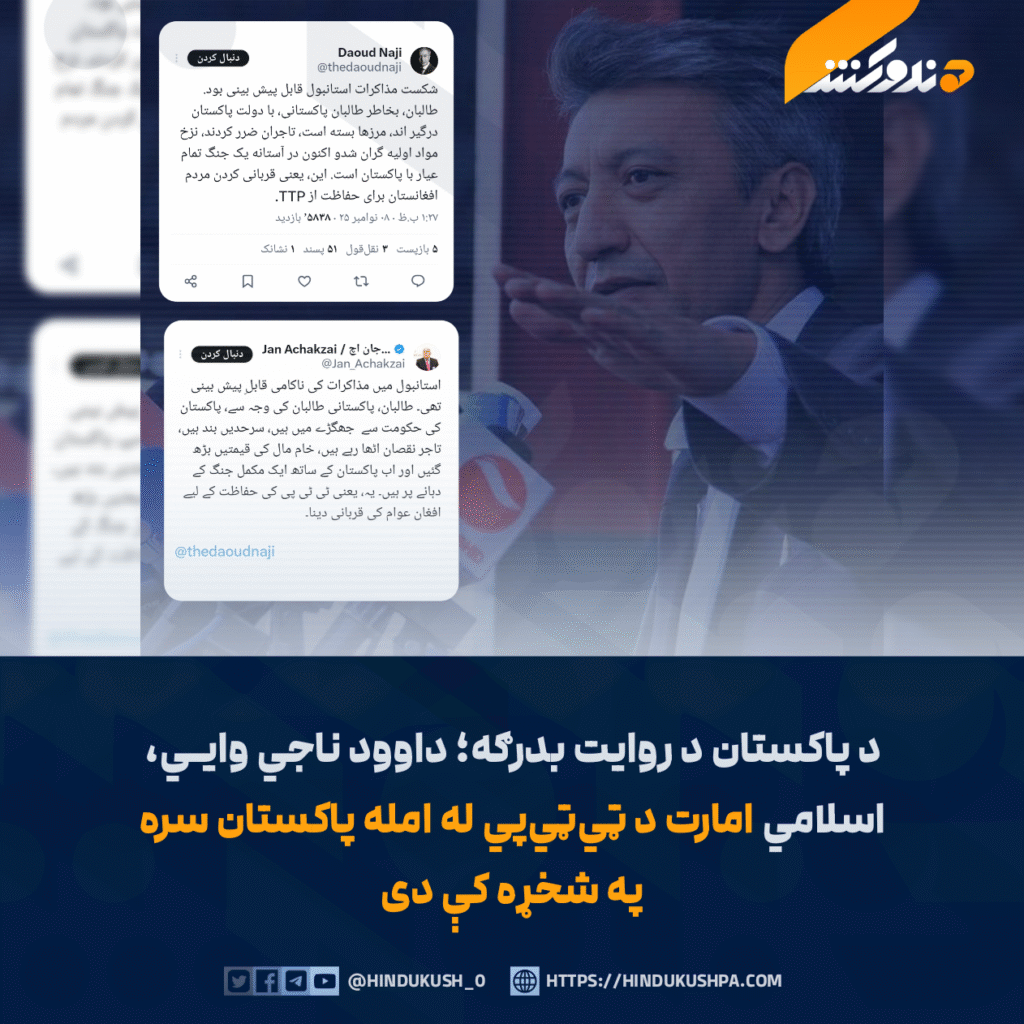 تاسو په:کورپاڼه»Blog»د پاکستان د روایت بدرګه؛ داوود ناجي وايي، اسلامي امارت د ټي‌ټي‌پي له امله پاکستان سره په شخړه کې دی.