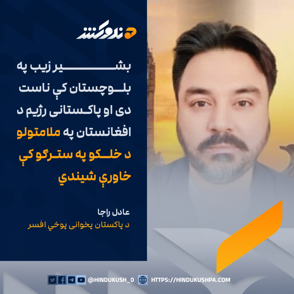 د پاکستان پخوانی پوځي افسر، عادل راجا: بشیر زيب په بلوچستان کې ناست دی او پاکستانی رژيم د افغانستان په ملامتولو د خلکو په سترګو کې خاورې شيندي