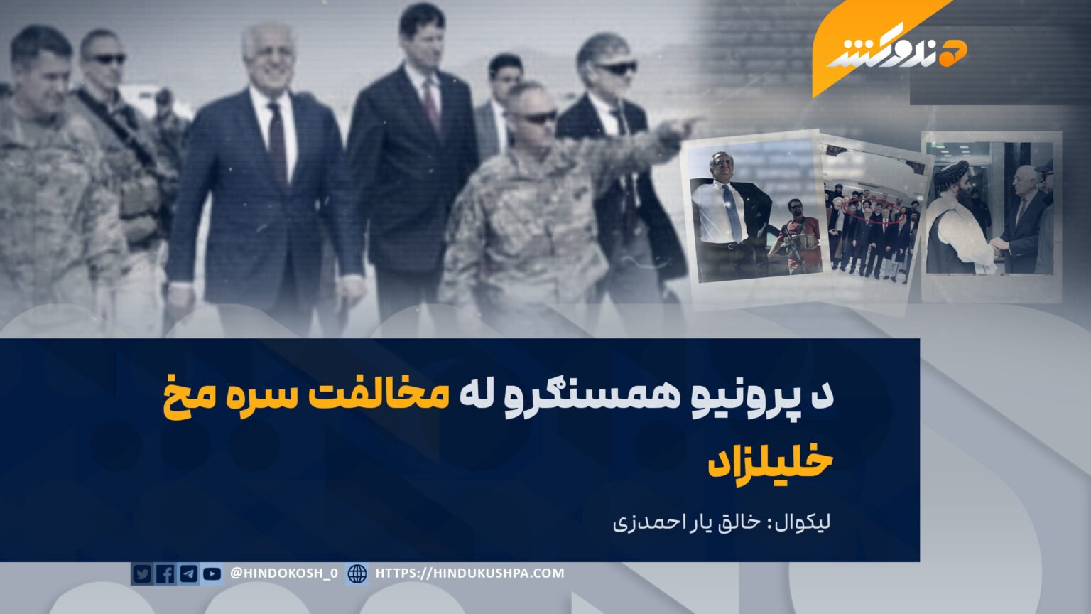 هغه خلیلزاد چې په دې وروستیو کلونو کې یې د تمې خلاف، له اسلامي امارت سره د امریکا په استازولۍ مذاکرات ملموسې نتیجې ته ورسول. پرونیو افغان نما ملګرو یې ترې ظاهراً ژورې لارې جدا کړې؛ هغه ملګري، چې په کوردننه سیاسي بانډارونو حال یې تر دې کچې ؤ، چې کله به یې خپلمنځي نښتې له بوتلونو تر توپونو رسیدې او کله به یې د صمیمیت فضا کې د شنو چایو تنده نه ماتېده.