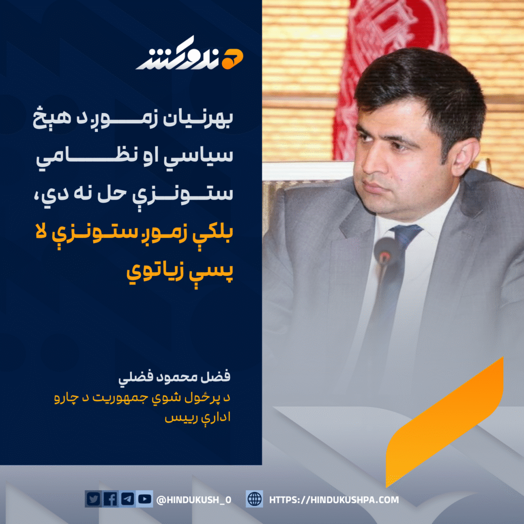 د پرځول شوي جمهوريت پر مهال د چارو ادارې رييس فضل محمود فضلي، باګرام ته د امريکا د بيا راتګ په شايعاتو او اوازو د مخالفو ډلو ټپلو او جبهو خوښي څرګندولو ته په اشارې ليکلي، چې بهرنيان د افغانستان د هېڅ سياسي او نظامي ستونزې حل نه دي او په خبره یې ستونزې لا پسې زياتوي.