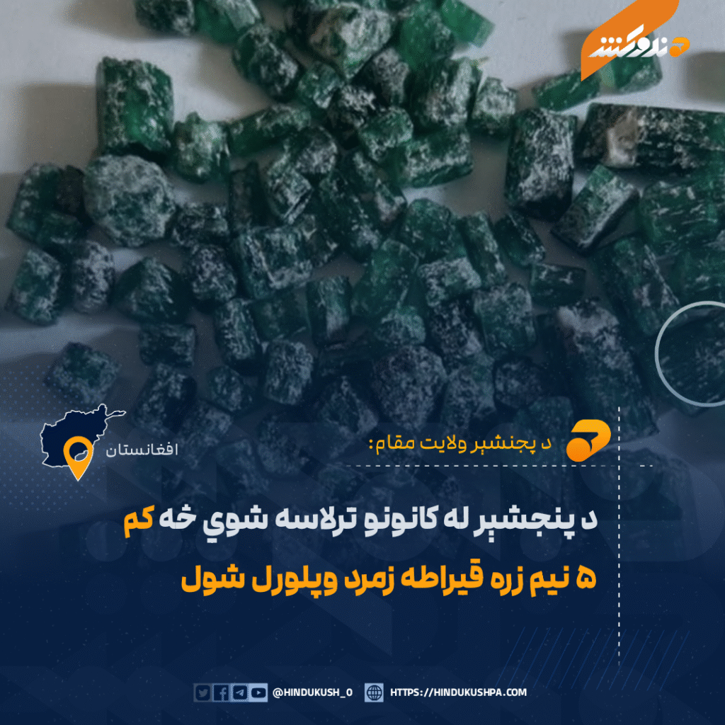 د پجنشېر ولایت مقام رسنيز دفتر وايي، چې د دې ولايت له کانونو څخه ۵ زره او ۴۳۵ قیراطه تازه استخراج شوي زمرد د يوې ازادې داوطلبۍ له لارې په ۱۸۹ زره او ۹۹۰ ډالرو پلورل شوي.