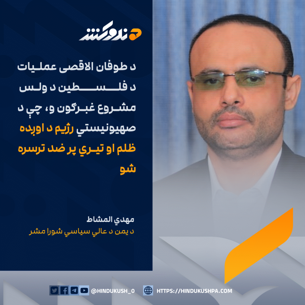 د يمن د عالي سیاسي شورا مشر مهديالمشاط ويلي، چې د طوفان الاقصی عمليات د اسرائلي رژيم د ظلمونو پر وړاندې د فلسطين د ولس مشروع حق و.