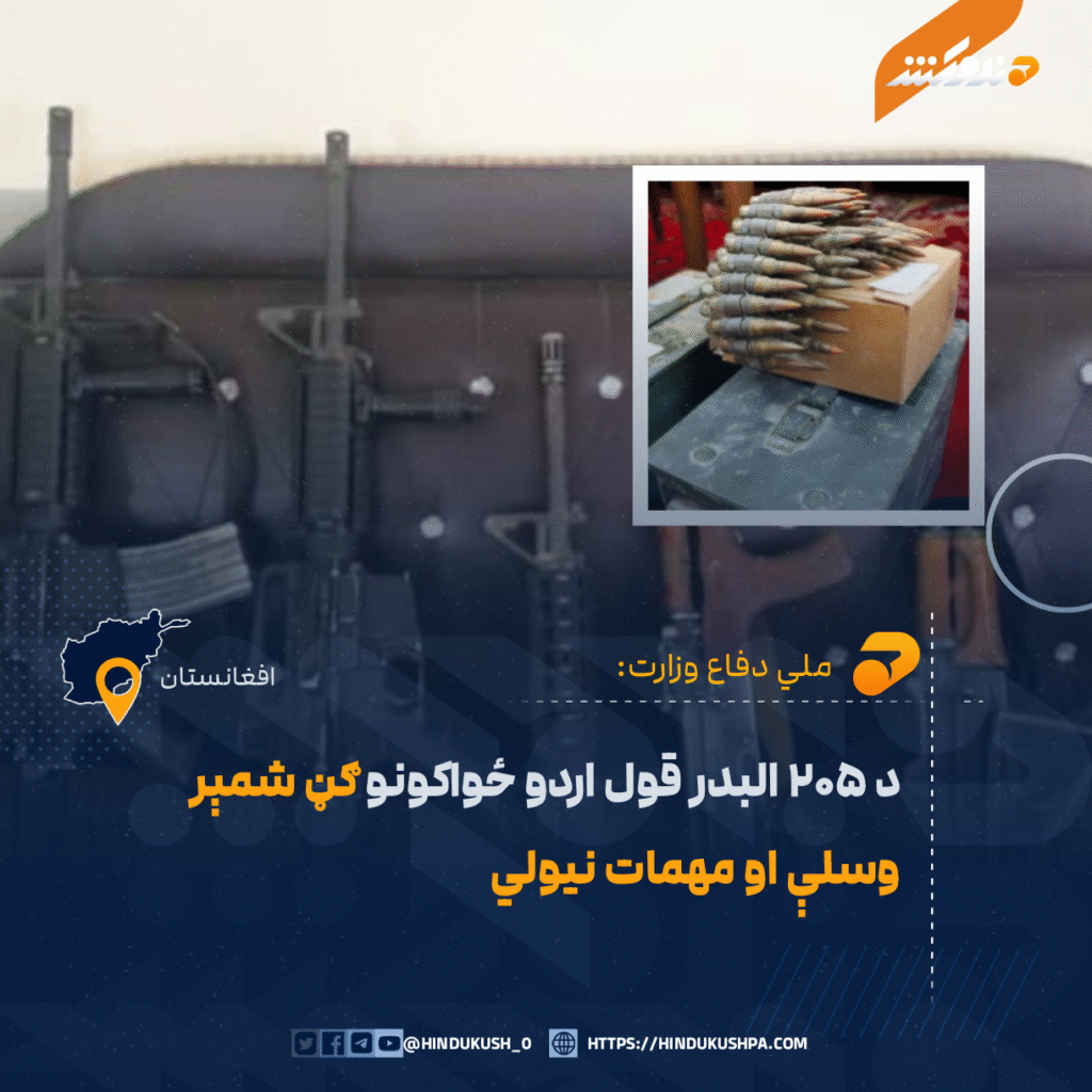 ملي دفاع وزارت وایي، د ۲۰۵ البدر قول اردو ځواکونو د کندهار-سپین بولدک پر عمومي سړک ګڼ شمېر وسلې او مهمات نیولي.