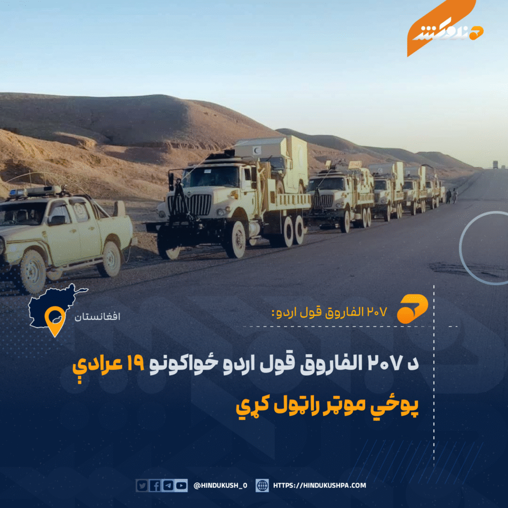 شېر کړئ Facebook Twitter بریښنالیک Telegram WhatsApp د ۲۰۷ الفاروق قول اردو ځواکونو د هرات له ادرسکن او ګذره ولسواليو څخه ۱۹ عرادې پوځي وسایط راټول کړي او د يادې قول اردو قرارګاه ته يې لېږدولي دي.له یادې قول اردو په خپرې شوې خبرپاڼې کې راغلي، چې په راټول شويو وسایطو کې اووه عرادې رېنجر، اووه عرادې هاموي ټانکونه، څلور عرادې امبولانسونه او يوه عراده انټرنېشنل موټر شامل دي.په خبرپاڼه کې راغلي چې راټول شوي وسایط تر دې وړاندې د غيرمسئولو اشخاصو سره او يا هم په ځينو نظامي مرکزونو کې په تخريب شوې او نيمهتخريب شوې بڼه موجود وو.۲۰۷ الفاروق قول اردو ډاډ ورکړی، چې ياد وسایط به ترميم او ګټې اخیستنې ته چمتو شي.
