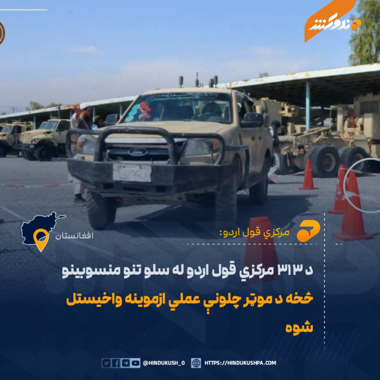 تاسو په:کورپاڼه»افغانستان»د ۳۱۳ مرکزي قول اردو له سلو تنو منسوبینو څخه د موټر چلونې عملي ازموینه واخیستل شوه