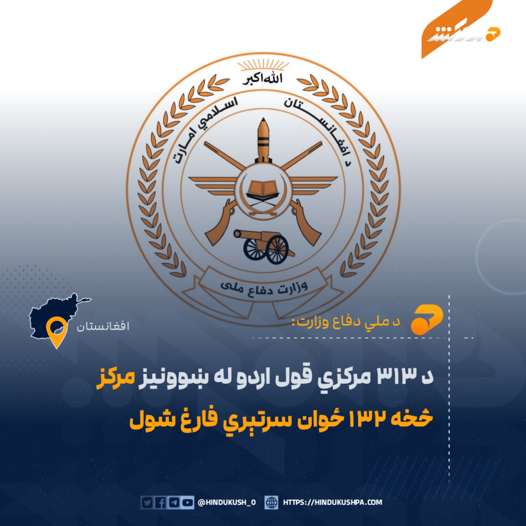 د ملي دفاع وزارت وايي، د ۳۱۳ مرکزي قول اردو له ښوونیز مرکز د جمعي تعلیماتو له اوومې دورې څخه ۱۳۲ تنه ځوان سرتېري د یو لړ مراسمو په ترڅ کې فارغ شول.