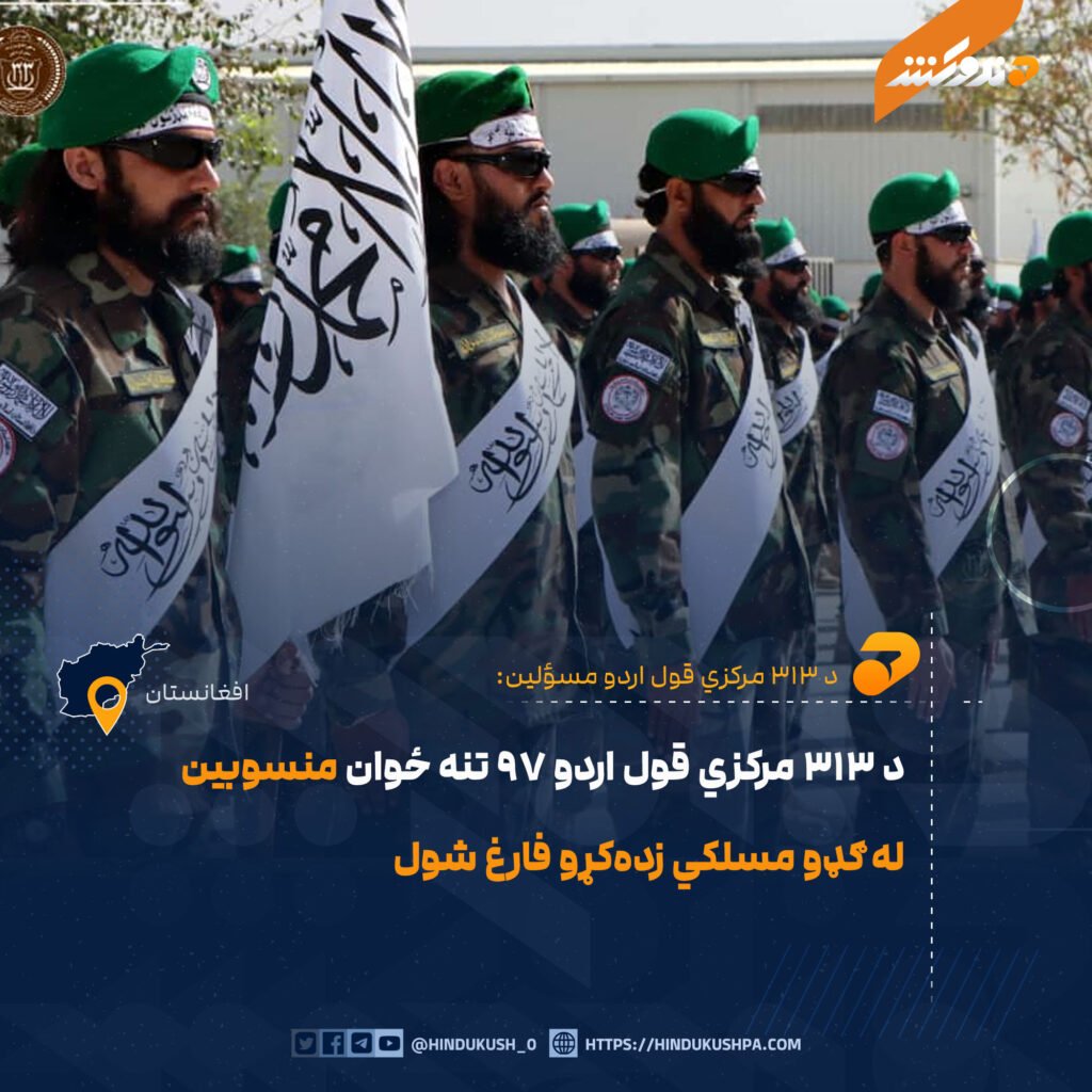 د ملي دفاع وزارت د ۳۱۳ مرکزي قول اردو د ښوونې او روزنې مدیریت د ډلهییزو زدهکړو له پنځمې دوه نیم میاشتنۍ دورې څخه ۹۷ تنه ځوان منسوبین نن د یو لړ مراسمو په ترڅ کې فارغ شول.