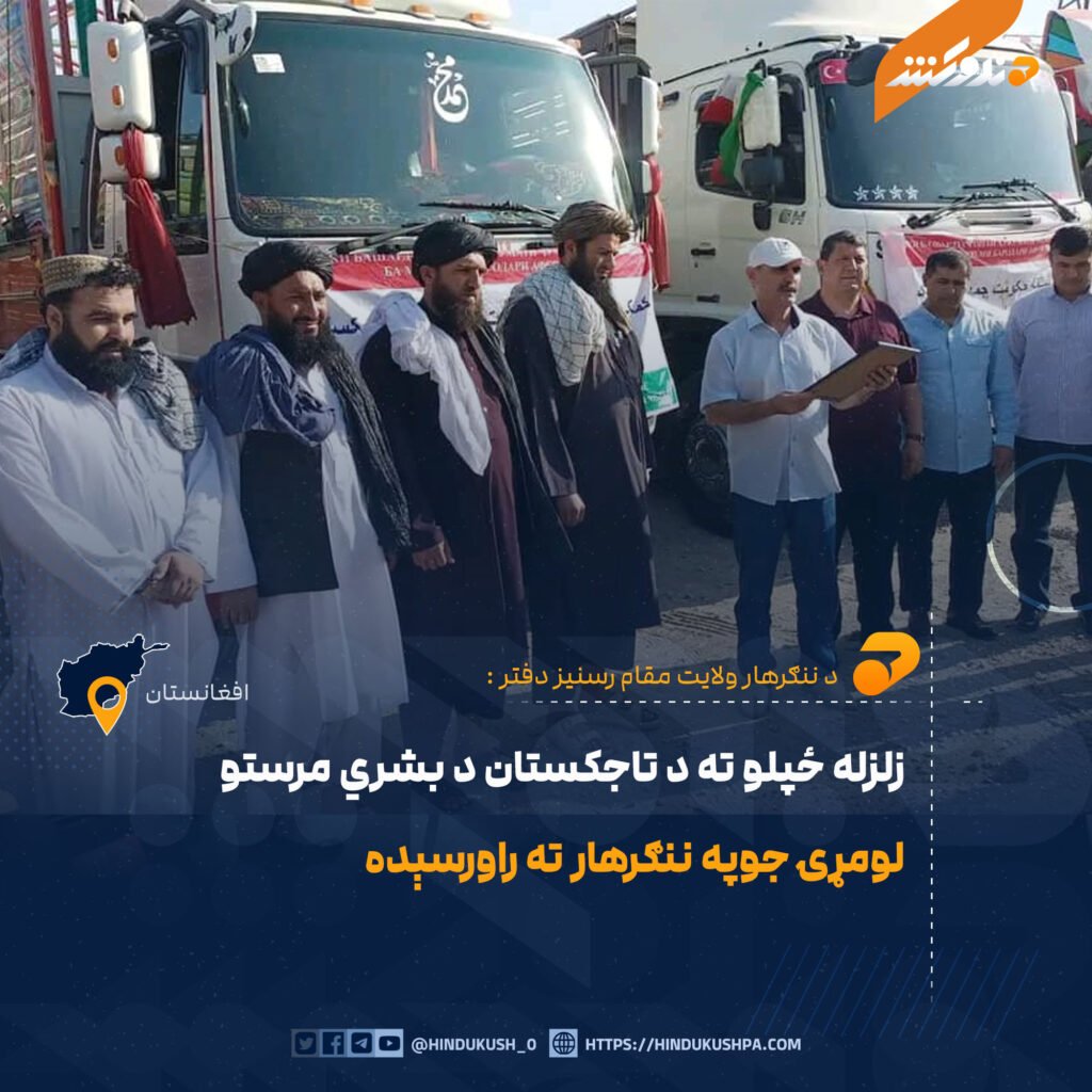 د ننګرهار ولایت مقام رسنیز دفتر خبر ورکړی، چې د تاجکستان د ۳۰۰۰ ټنو ساختماني، خوراکي او غير خوراکي توکو د مرستې لومړۍ جوپه په نهه عرادو موټرونو کې ننګرهار ته رسېدلې.