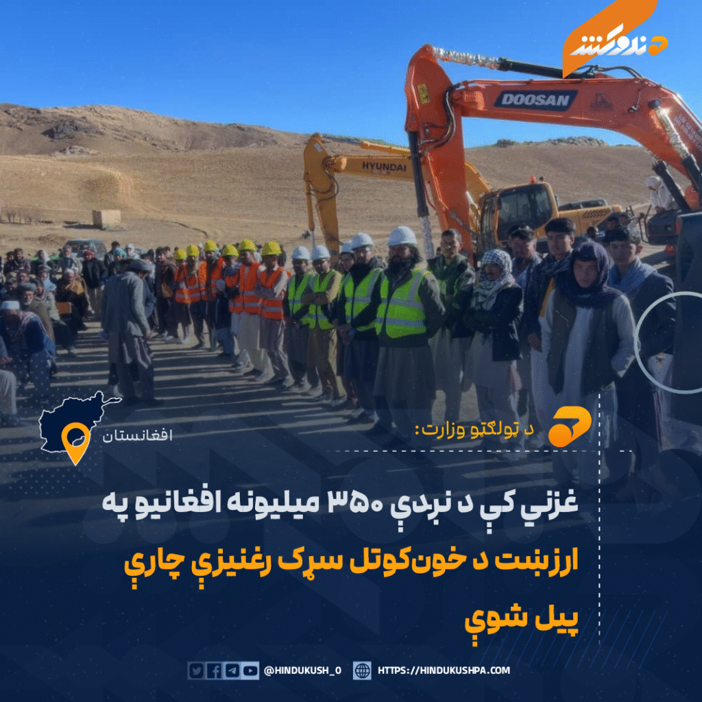 د ټولګټو وزارت ویاند، محمد اشرف حق‌شناس وایي چې د غزني اجرستان ولسوالۍ کې د نږدې ۳۵۰ میلیونه افغانیو په لګښت د خون کوتل سړک رغنیزې چارې پیل شوې.
