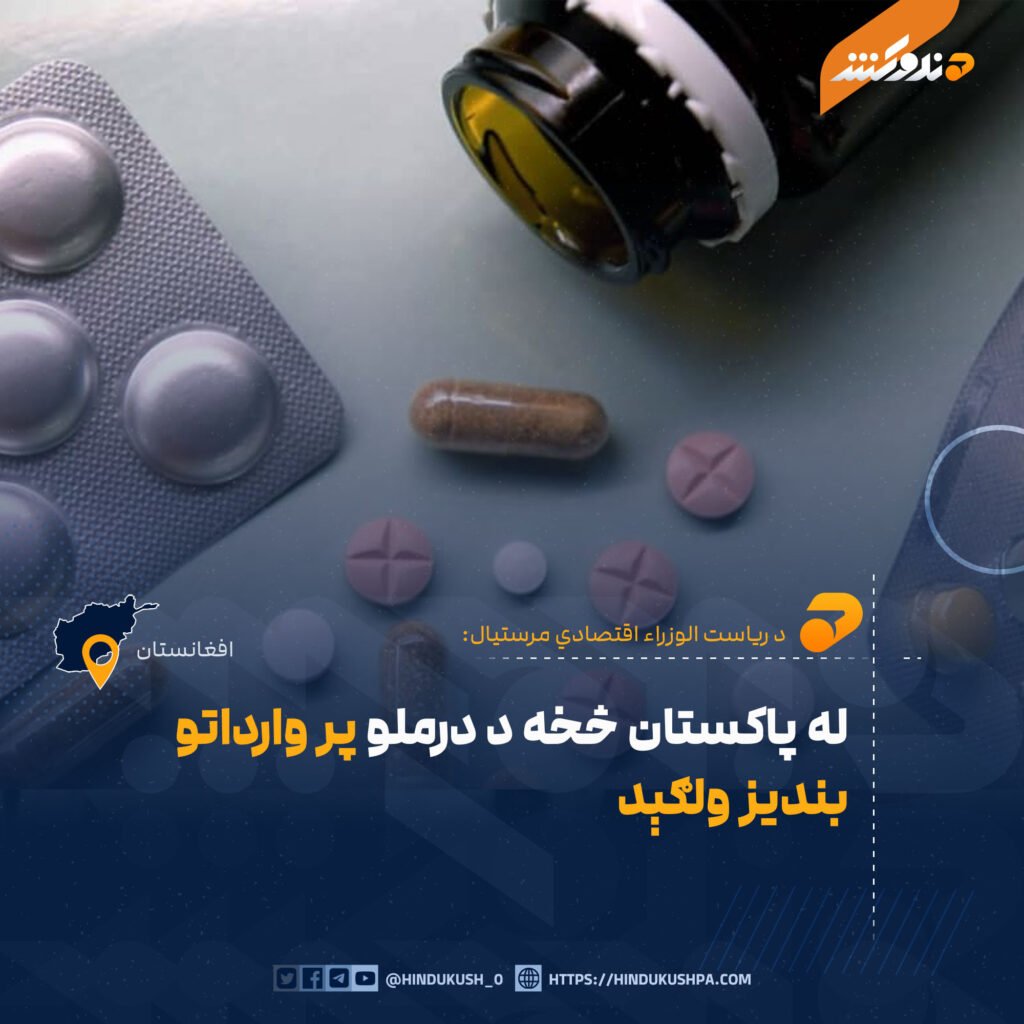 د ریاستالوزراء اقتصادي مرستیال، ملا عبدالغني برادر مالیې وزارت ته سپارښتنه کړې، چې له راتلونکو درېیو میاشتو وروسته له پاکستانه واردېدونکي درمل محصول نهکړي.